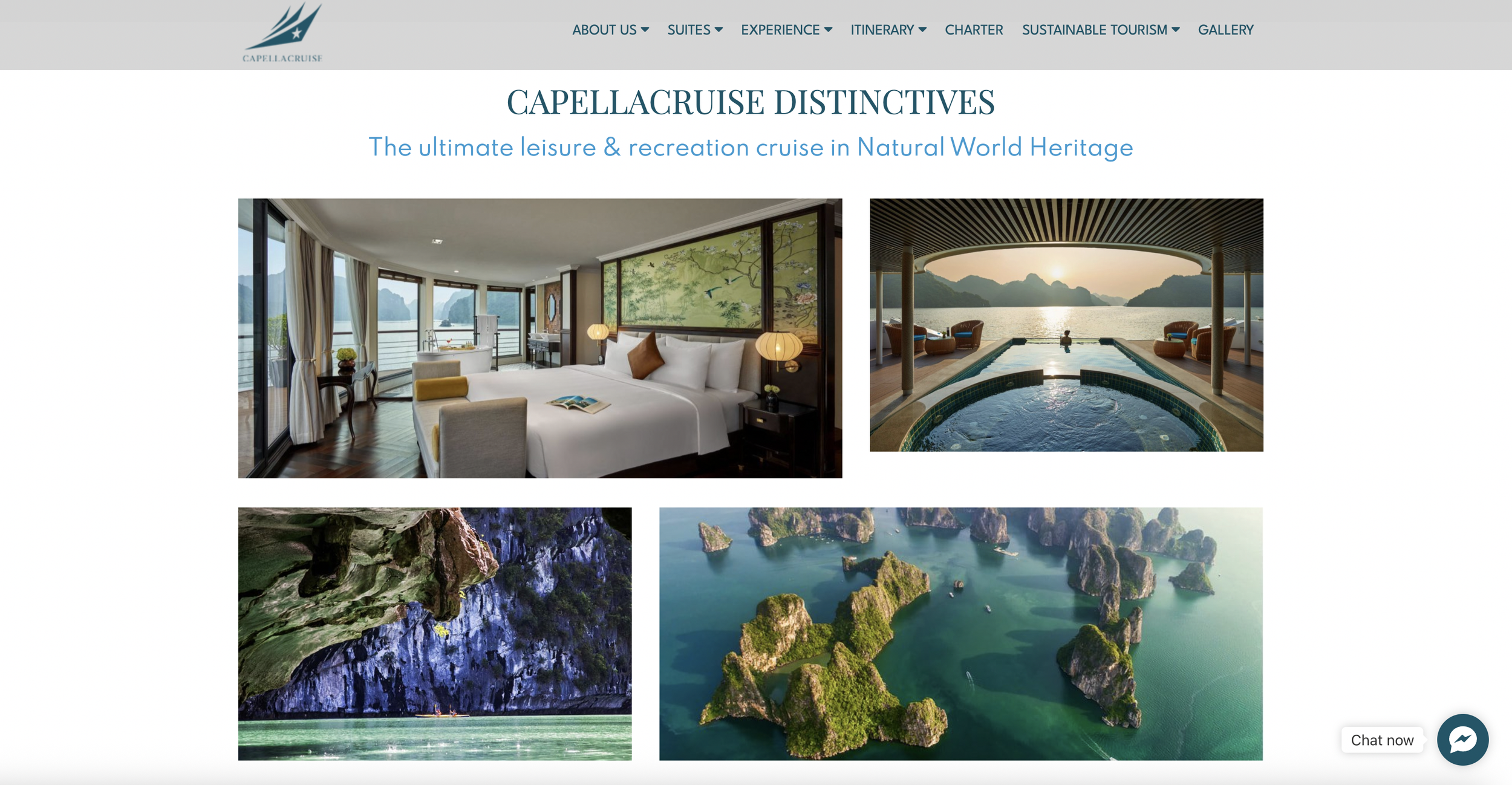 Named after the brightest northern star, Capella cruise was officially launched in August 2020, carrying the same spirit and mission to become the most brilliant cruise in the Gulf of Tonkin, pioneering outstanding facilities and attentive services that never been experienced in magical landscape of Halong & Lan Ha Bay. Let all your senses be embraced by emerald green ripples from a remote beach, the story of stalagmites and stalactites inside a cave, and the raw beauty of a forested island with your once-in-a-lifetime journey onboard Capella cruise.